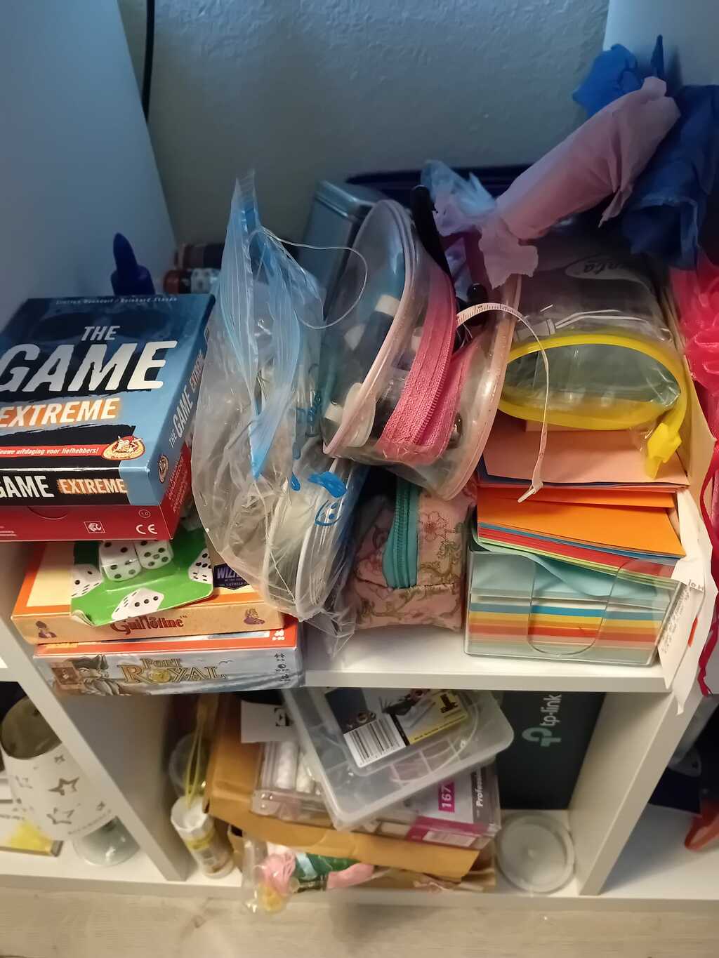 Since I live in a small studio, I am unable to hoard all the supplies I want, but there is still a lot of space occupied with "creativity". These are just supplies for whatever hobby I want to spent time on and allow me to start new things easily.