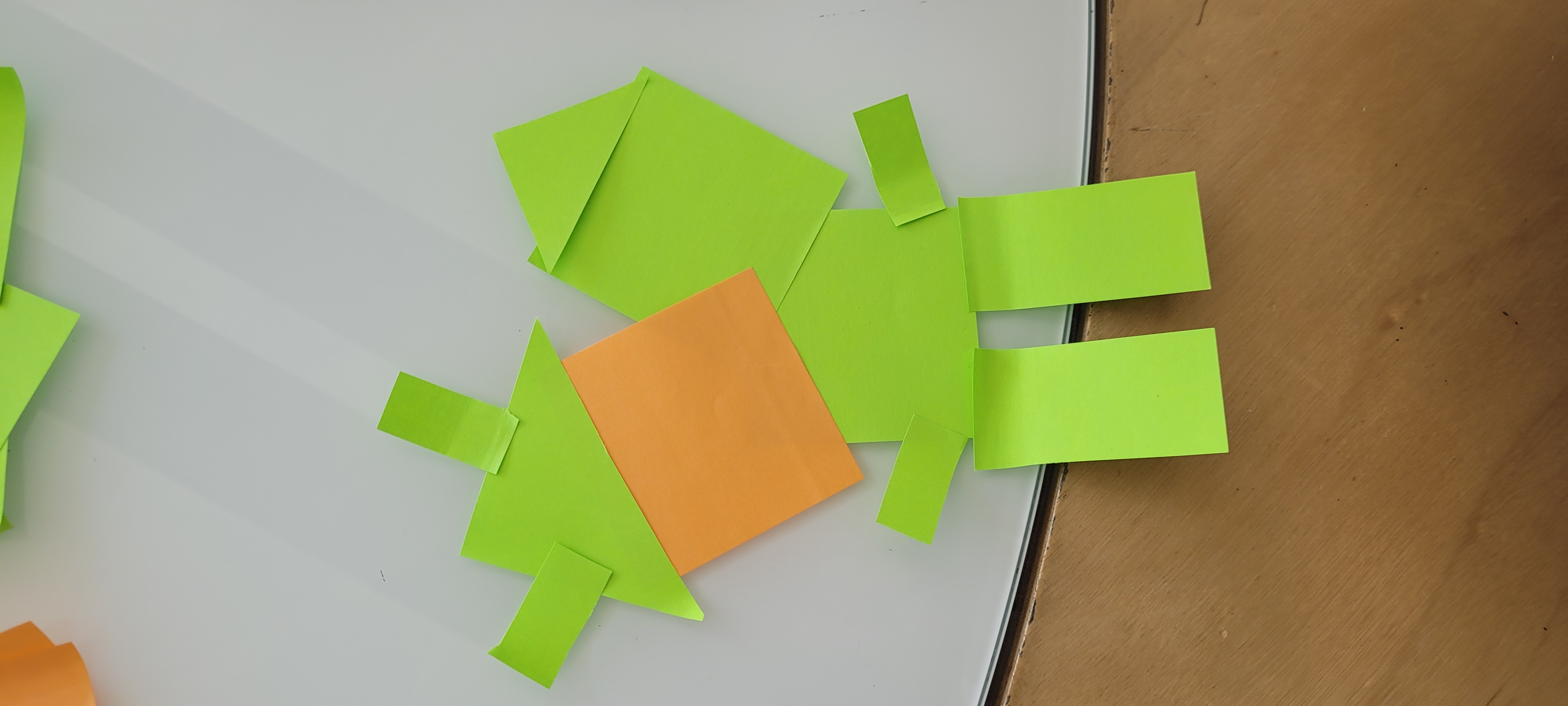 Eventually, in the spirit of simplicity, the final tool consists of a lot of different basic paper shapes that designers can combine into any form they want. The use of paper makes it easy to set up and move around and it can be easily modified by drawings of the designers. The setup can be seen below in Figure 4.1. This tool allows for full creative freedom and allows designers to be inspired by simplicity. A similar approach has been done by Voges et al. [5A] who created a creative toolkit for the embodiment of Social Robots. Their kit does contain more robotic shapes, but they also reflect that using those limits the amount of novel ideas. Voges et al. found that the use of the kit allows for a creative approach and has a low threshold even for those without a Social Robot background.
